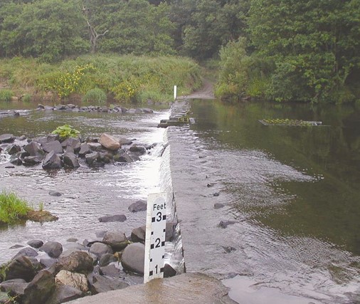 Major: crossing place with bed comprising artificial material which causes significant ponding of water upstream. Banks may be natural or artificial. Can be rubble infill (farm track) or a road crossing (e.g. tarmac, concrete).
