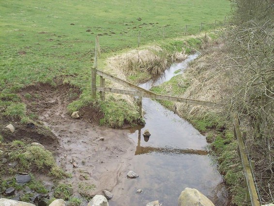 Bank significantly trampled or puddled by livestock. Include banks trampled as a result of human activity such as picnic spots, canoe access points, and fishing spots dug into the bank.