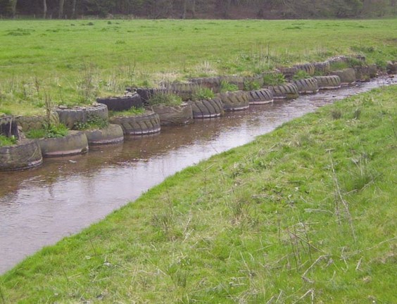 Discarded material from, for example, farming, mineral extraction and building works. Includes: rubble, metal, wood, old cars and excavated soils and other minerals. Location on the bank may be un-intentional, or to provide extra bank protection. If providing bank protection, reinforcement (RI) should be recorded in bank modification.
