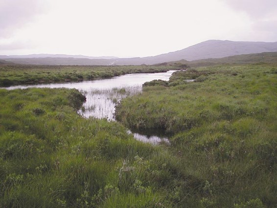 Vegetation growing on wet peat where the water table is at, or just below, the surface. The water source is direct rainfall and in some cases, over-land flow occurs during heavy rain events. Sphagnum moss is always present, often with bog cotton (Eriophorum). In locally drier areas heather (Calluna, Erica) may also be present, but never dominant. When the heathland component is uncommon, and bog predominates, record ‘Moorland/heath’ as ‘present’, and record ‘Bog’ as ‘extensive’.